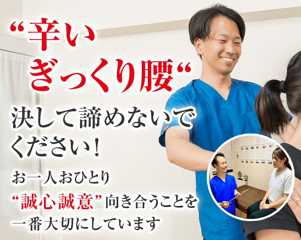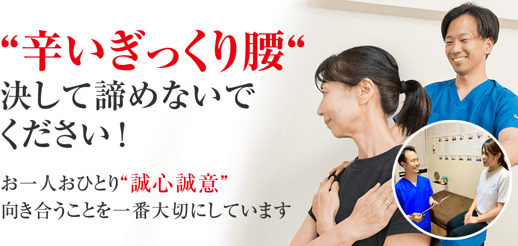 - 3つ以上の病院、接骨、整体院に通ってみたがぎっくり腰が改善しなかった。