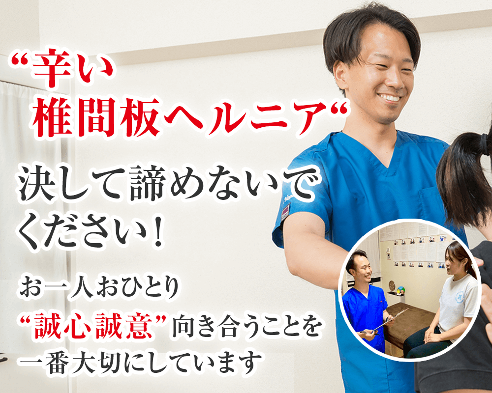 - 3つ以上の病院、接骨、整体院に通ってみたが椎間板ヘルニアが改善しなかった。