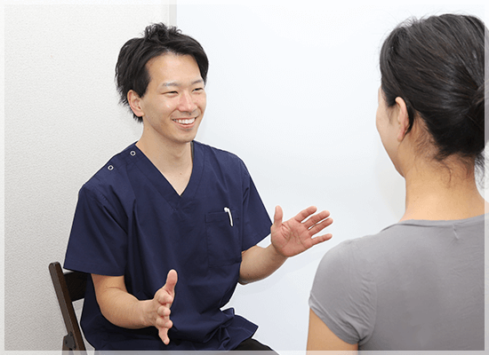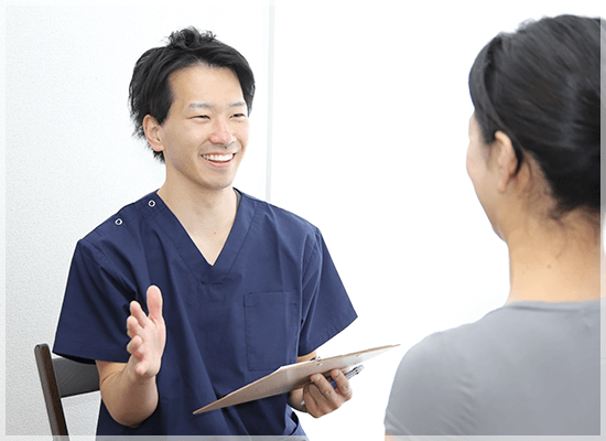 当院では初回のカウンセリングで検査を行い、あなたの体の状態、股関節痛の原因を突き止め、ご説明させていただき、ご利用者様にも十分なご理解とご納得をいただいてから施術をはじめていきます。