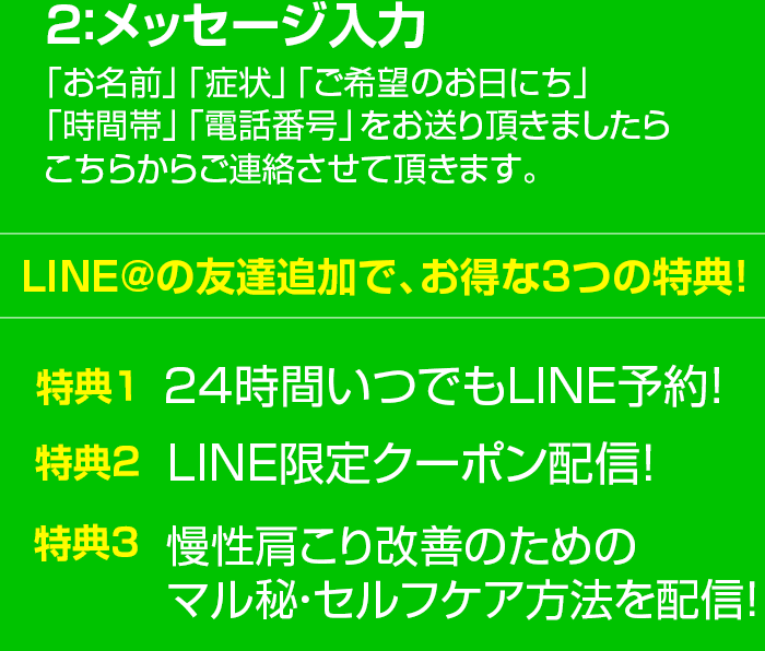 また、もし来院後3日以内に効果が出なければ、もう一度来ていただき、無料で再度施術させて頂きます。