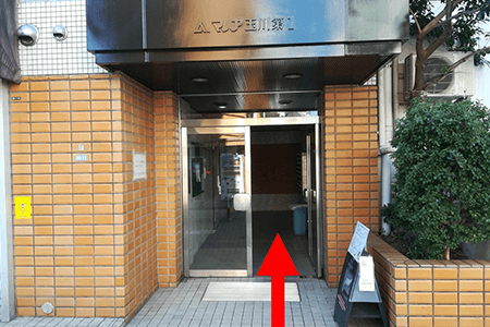 8こちらの入り口からお入り下さい。奥のエレベータで3階へお上がりください。