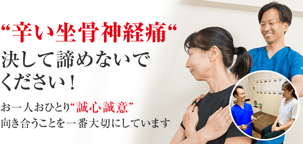 - 3つ以上の病院、接骨、整体院に通ってみたが坐骨神経痛が改善しなかった。